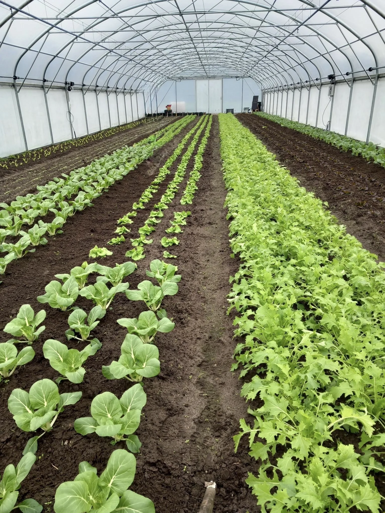 With the technical side sorted, it was time for the real work: getting our hands in the soil. One of the main reasons we built the greenhouse is to extend our growing season — giving us fresh greens before spring truly arrives and well into autumn. Year-round harvests, that’s the dream.